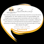 This testimonial comes from a client who truly embodies the entrepreneurial mindset that Sims Coaching Group inspires & guides. Are you ready to share your own success story? Reach out to us through any of the contact methods on our website!